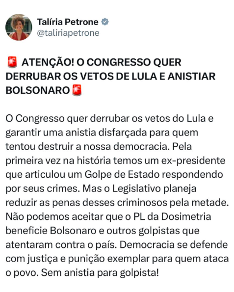 Agora no BrasilDestaquesImagens ATENÇÃO! O CONGRESSO QUER BARRAR OS VETOS DE LULA E ANISTIAR BOLSONARO 29 de abril de 2026 Canal Pororoca 0 Curta isso Deixe este campo vazio.Assine nossa newsletter para receber notícias diárias! Verifique sua caixa de entrada ou a pasta de spam para confirmar sua assinatura.