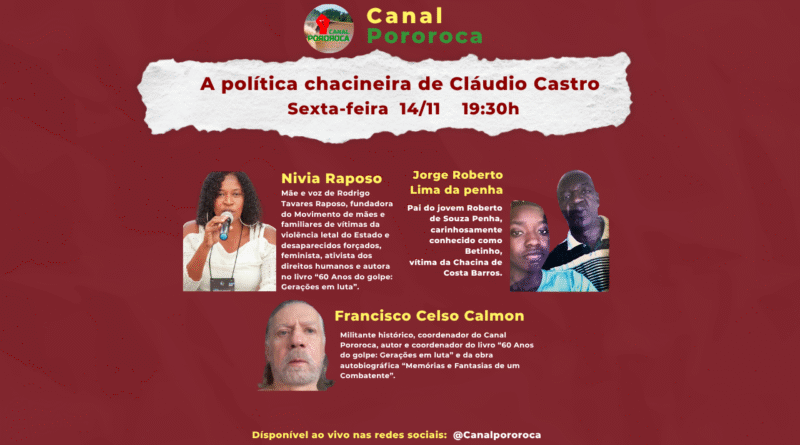 DestaquesImagens 11 de novembro de 2025 Canal Pororoca Live: A política chacineira de Claúdio Castro, dia 14/11/25 às 19:30h Read More