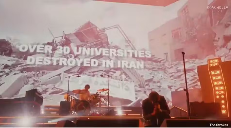A banda The Strokes encerrou seu show no Coachella, no sábado (18), com mensagens de protesto contra as invasões feitas pelos Estados Unidos.