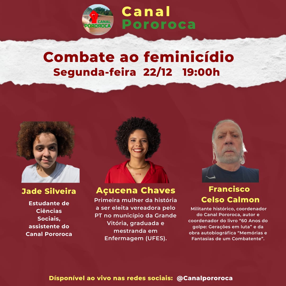A live também terá a presença de Francisco Celso Calmon, militante histórico e coordenador do Canal Pororoca.