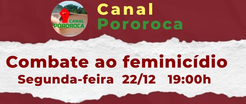 Nesta segunda-feira, 22 de dezembro, às 19h, o Canal Pororoca, no YouTube, realiza uma live dedicada ao debate sobre a violência contra a mulher, com foco no combate ao feminicídio.