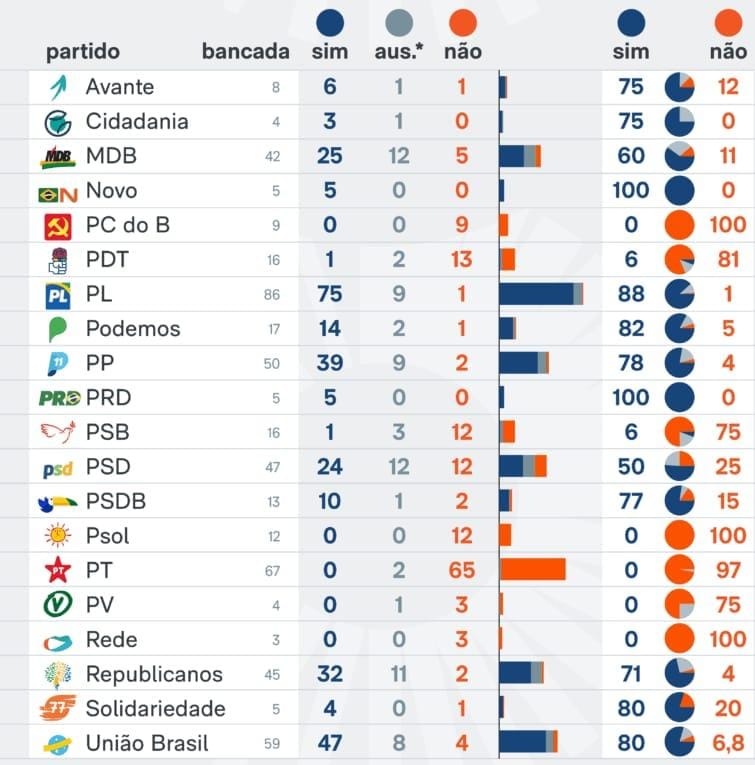 - União Brasil – ampla maioria favorável (4 votos contrários)