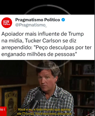 Tucker Carlson, que impulsionou a direita radical nos EUA, afirmou que isso se revelou uma tragédia. Ou seja, disse que vendeu uma ilusão. O pedido de desculpas de Tucker Carlson deveria levar a direita brasileira a rever suas posições e reconhecer o erro de apoiar Jair Bolsonaro, mas falta cérebro para isso.